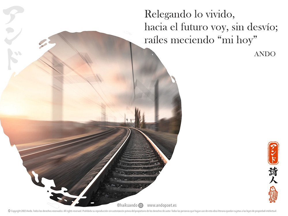 Media juventud, me la pase sobre las vías. Vivía en Premià y estudiaba en la Universitat de Barcelona. Tuve la suerte de hacerlo en una de las líneas ferroviarias más bellas y con vistas al mar. A menudo veía salir el sol desde la ventanilla -Flashes que la retina jamás olvida-. Me sentía un privilegiado por poder estar leyendo y estudiando Mientas viajaba ante semejantes obras de arte. Muchos años más tarde, (sentado ahora al lado de mí compañera de viajes y camino a Figueras de turismo alternativo), quise rendirle, homenaje al tren con este poema corto sobre las vías y, en paralelo -nunca mejor dicho-, sobre mi vida.
